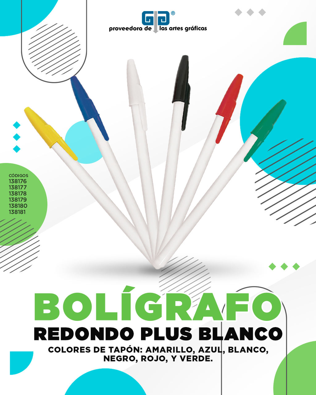 BOLIGRAFO REDONDO PLUS BLANCO TAPON COLORES VARIOS