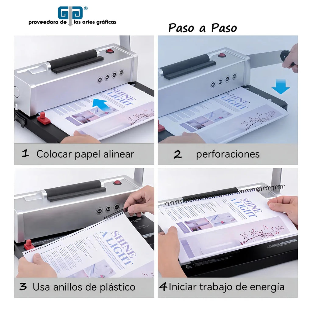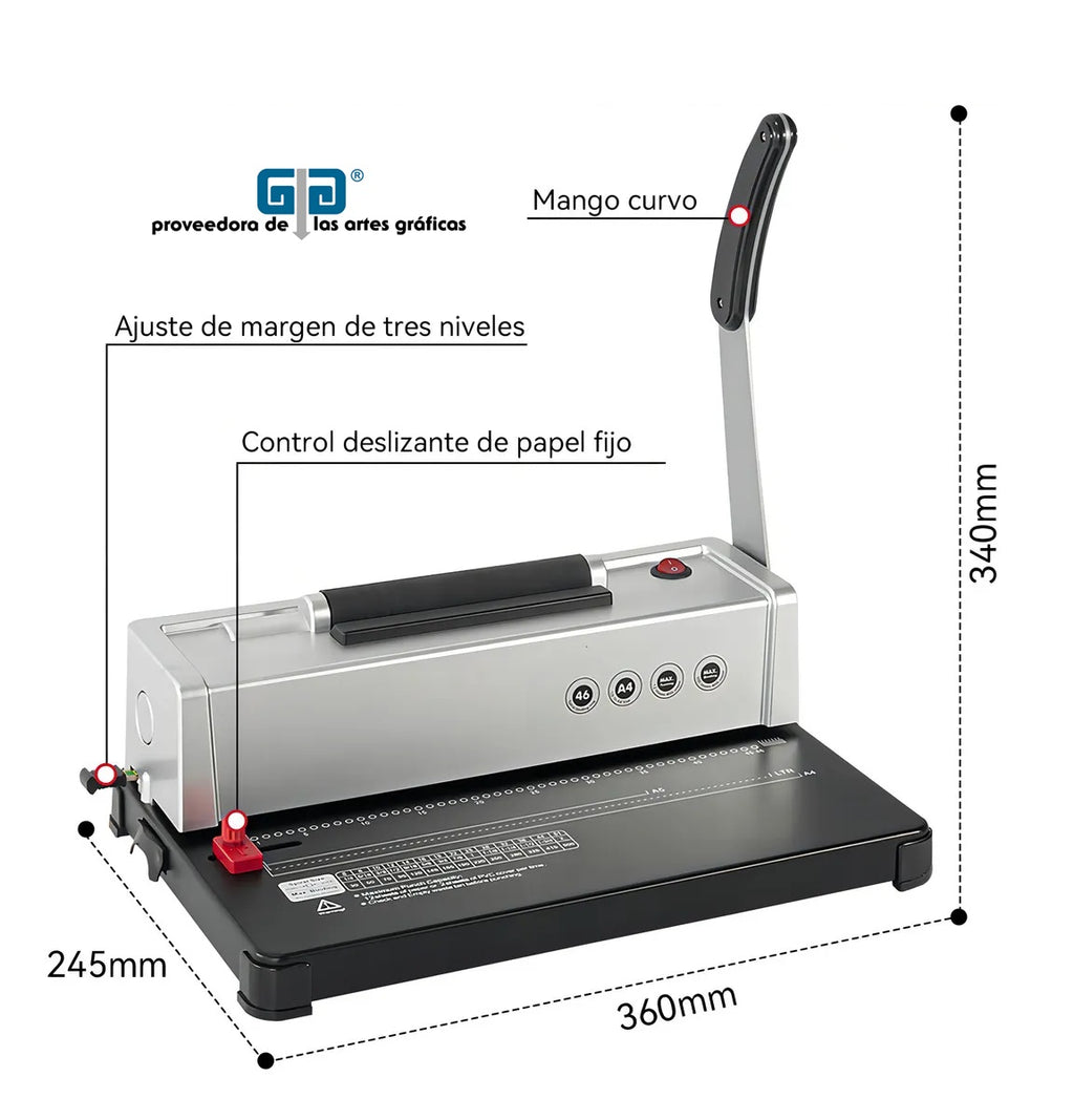 - Capacidad de encuadernado hasta 265 hojas.