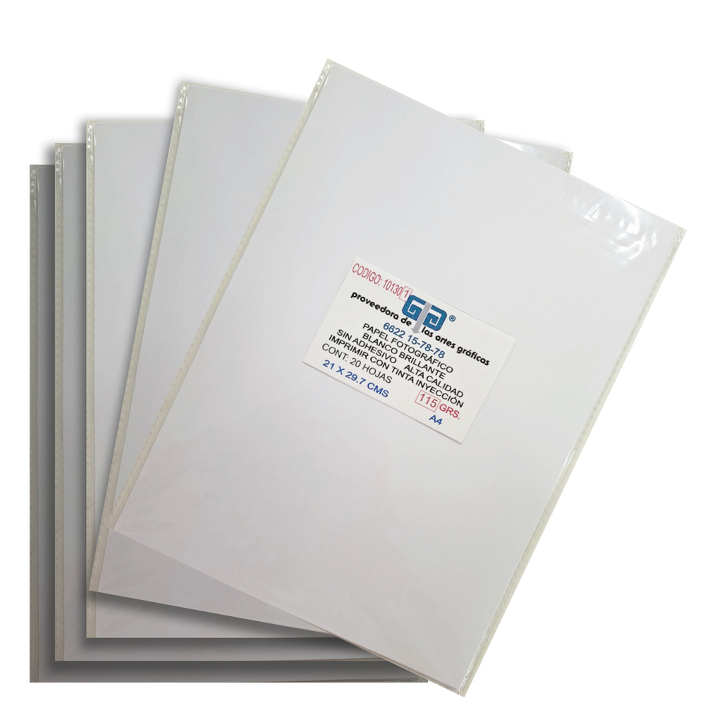 PAPEL FOTOGRAFICO SIN ADHESIVO, PAQUETE CON 20 HOJAS TAMAÑO CARTA, COLOR BLANCO, DE 115 GRAMOS.