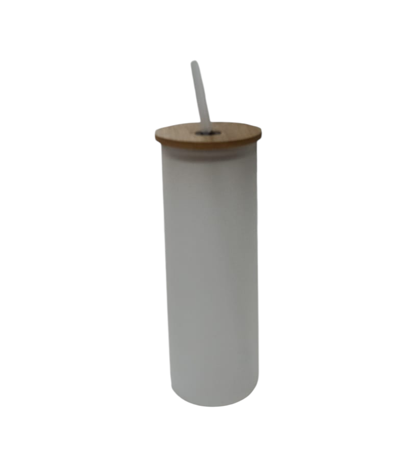 VASO DELGADO DE VIDRIO ESMERILADO CON DEGRADADO, COLOR SEMI TRANSPARENTE, CON PAJILLA PLASTICA Y TAPA DE BAMBOO DE 17 OZ O 500 ML, SEMI TRANSAPARENTE (ESMERILADO)