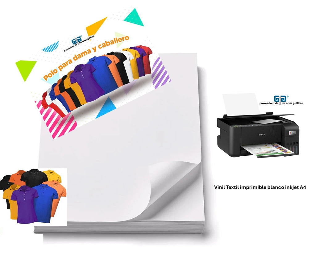Vinil textil de alta calidad, color blanco, compatible con impresoras de inyección de tinta (inkjet), siendo un producto que ha sido diseñado para transferir imágenes y gráficos personalizados sobre prendas y textiles.
